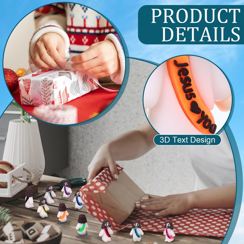 - Widely Application:These exquisite mini Jesus figures are widely used in various religious activities,such as presents for Christian church activities,Sunday school outdoor activities,etc.Not only can they be used as decorations,but also as favors for Easter,Christmas parties,hide-and-seek games.They can be placed on desktops,bookshelves,desks or car dashboards or used as props in various religious activities,conveying the message of love and religion in a fun and fashionable way,looking interesting and cute.