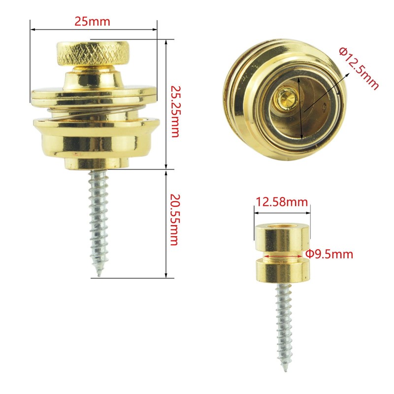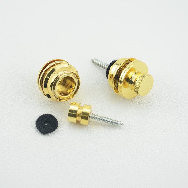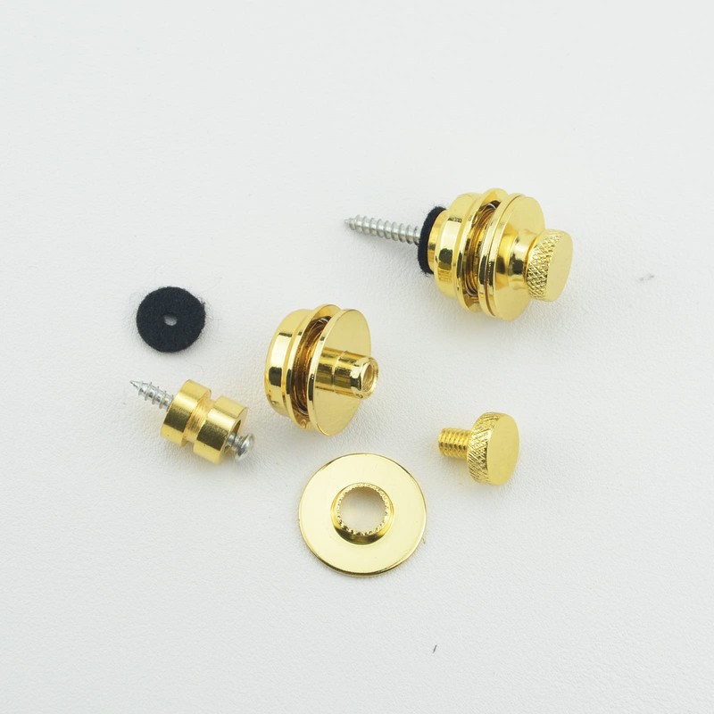 Wwomusic Gold Guitar Strap Locks Classical Design Flat Round Head Heavy Duty Metal Button Security Strap lock with Strap Blocks Washers for Electric Acoustic Guitar Bass
