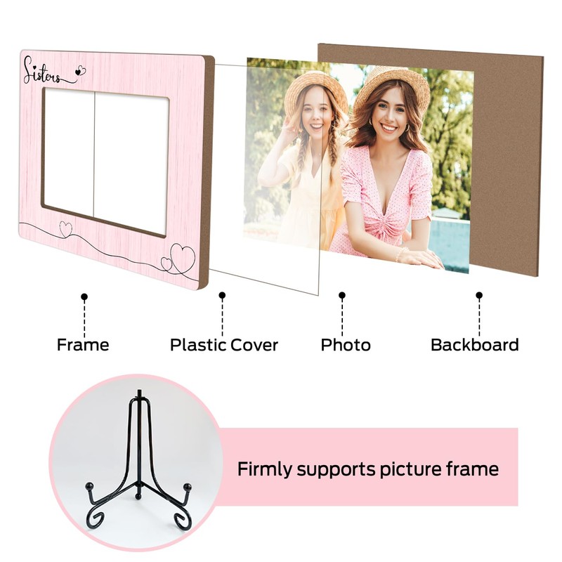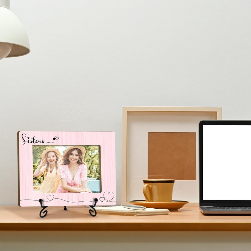 WwongxianB Rustic Wood Picture Frames For Sisters, Photo Gifts For Birthday Christmas, Pink Tabletop Display Desk Photo Frame Hold 4 * 6 Inch Picture, Home Office Desk Decor(Horizontal) -47