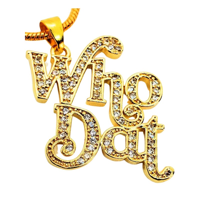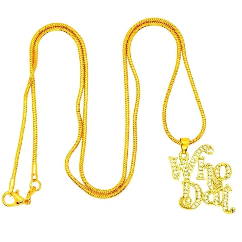 www.thewhodatstore.com New Orleans Saints Gold Who Dat Rhinestone Pendant Necklace