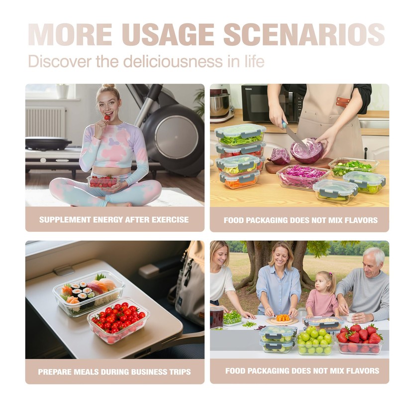 - ✅Excellent Quality of Glass Material: The glass meal prep containers are made of high-quality borosilicate glass, suitable for use in ovens, microwaves, dishwashers and refrigerators. Unlike ordinary glass food storage containers, food can be directly stored in these glass containers after cooking. This versatile container meets your daily food storage needs, and is suitable for meal preparation at home or any occasion where you need it.
