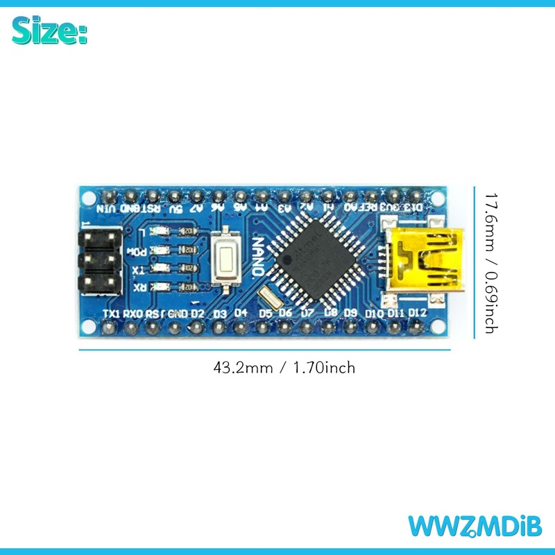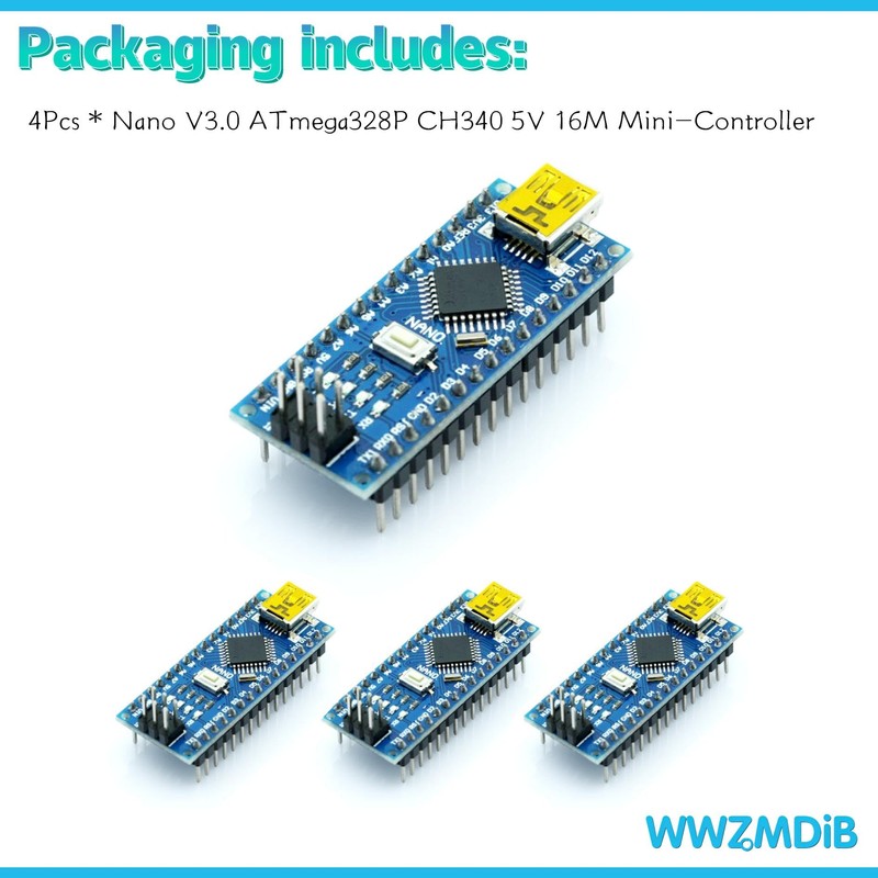 WWZMDiB Nano ATmega328P CH340 5V 16M Mini-Controller Board Compatible with Arduino Nano V3.0 (4Pcs Nano Welded Without Cable)