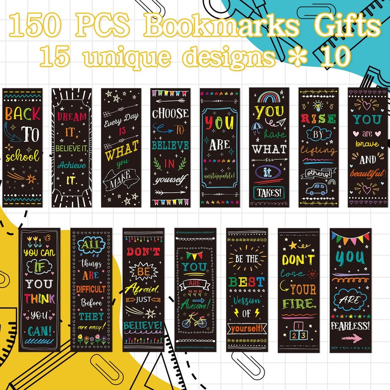 - 【Meet Your Needs】This back to school bookmarks for students contains 150 black-bottomed colorful back-to-school themed bookmarks with 15 unique styles, enough to meet your daily use and reading needs, and is very suitable for sharing with classmates and friends