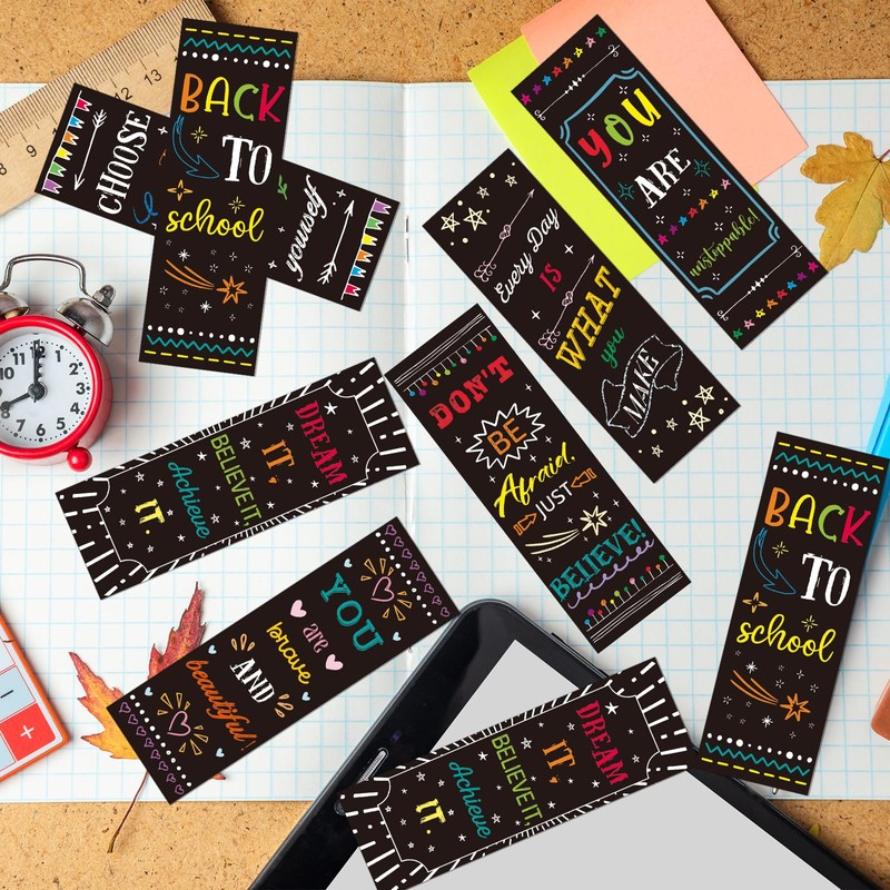 - 【Back to School Bookmarks】Our bookmarks are designed with black background and colorful, and contain rich elements of the school season, from wise sayings to inspiring motivational phrases. Each bookmark conveys a powerful spiritual force, motivating you to strive for progress and igniting your passion for learning