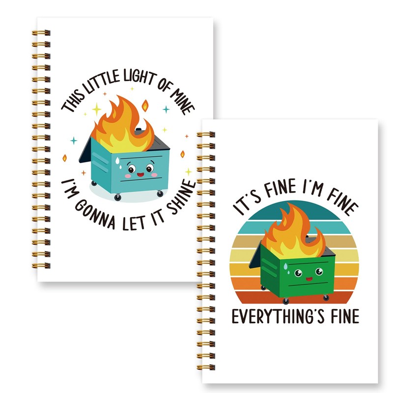 - 【Cheerful Design】Our set of two spiral notebooks includes two different styles of dumpster with fire patterns inside and inspiring words such as "It's Fine, I'm Fine Everything's Fine", so you can feel fun and motivation every time you use it