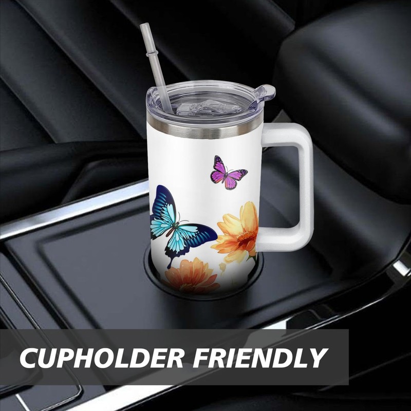 wxmbdzq 40 oz Butterfly Tumbler with Handle and Straw Lid,Leak Proof Travel Stainless Insulated Tumbler,Cup Holder Friendly,Perfect for Outdoor Travel Car and Sports