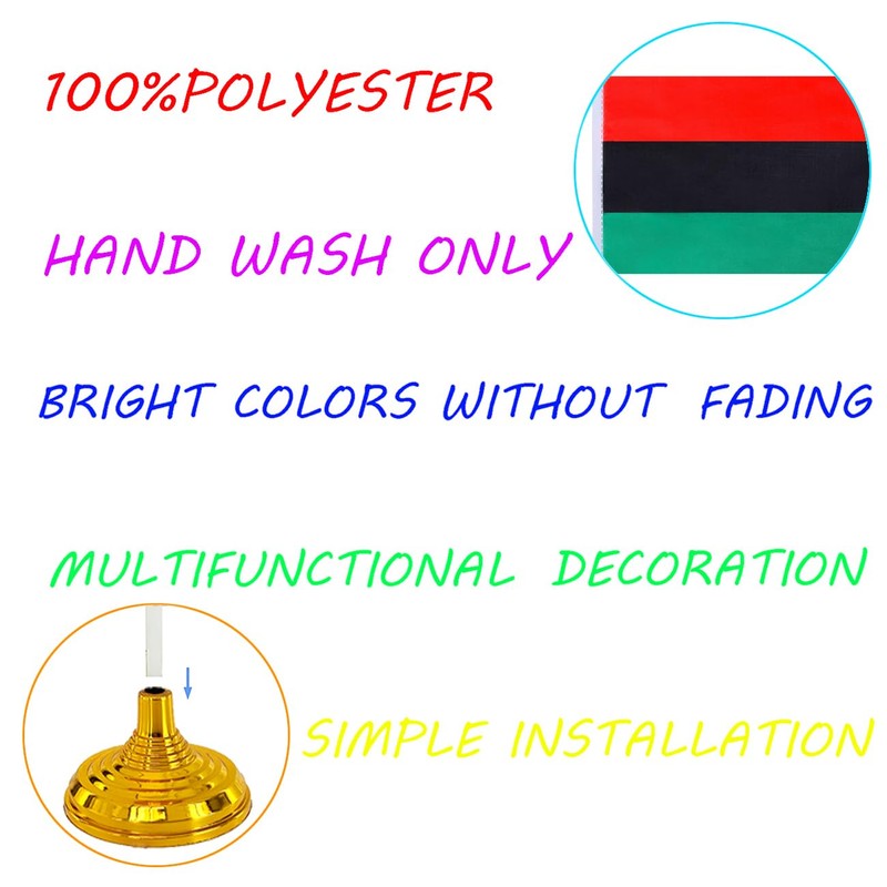 - [Proud Desk Flags decoration] In addition to the holiday Afro American theme party, these table flags are also great for parades, parties, table decorations, you can also put flags in the backyard, school, sports club, garden, golf course, playground, flower pots , office, family, conference room, etc.
