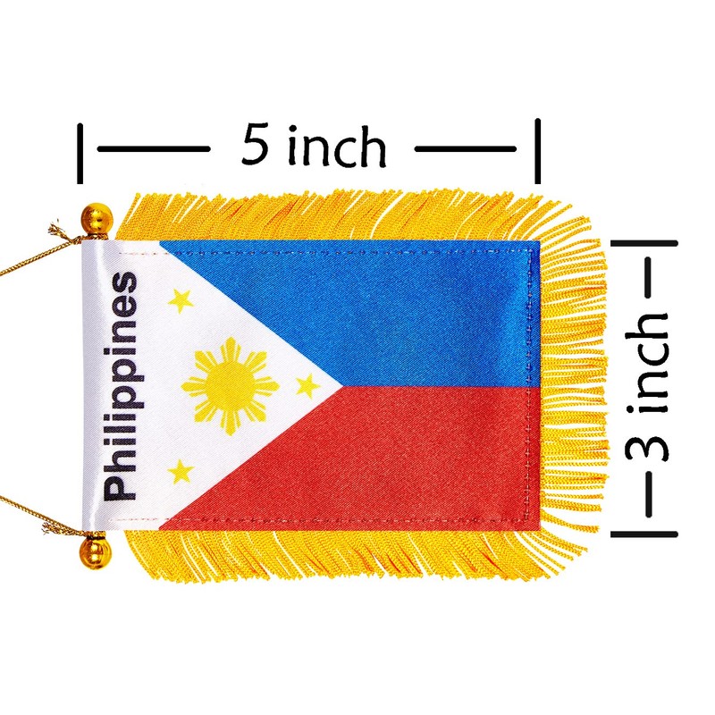 WXTWK 3 X 5 Inch Philippine Philippines Flag Filipino Window Hanging Flag Small Mini Car Flags Banners Rearview Mirror Decoration With Suction Cup Golden Fringy Banner
