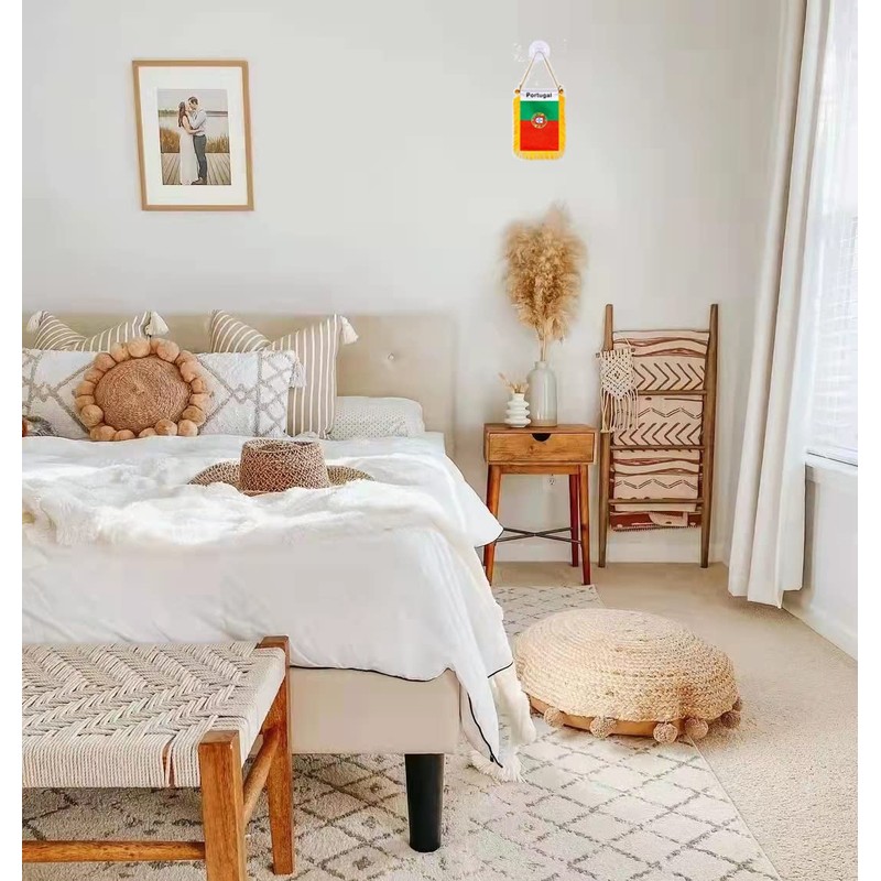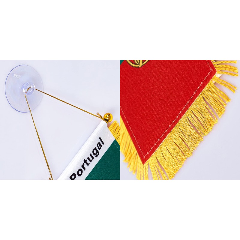 WXTWK 3 X 5 Inch Portugal Flag Portuguese Window Hanging Flag Small Mini Car Flags Banners Rearview Mirror Decoration With Suction Cup Golden Fringy Banner
