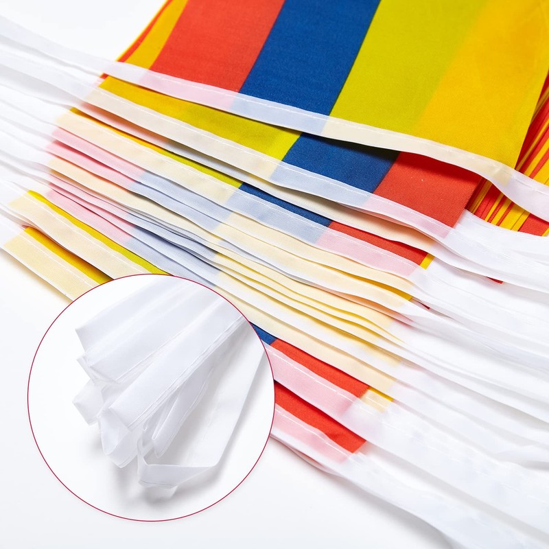• 【FLAG BANNER SPECIFICATIONS】The size of a single flag is: 5 x 8 inches. The length of the entire banner flags is 50ft, with 38 small flags evenly distributed on it.