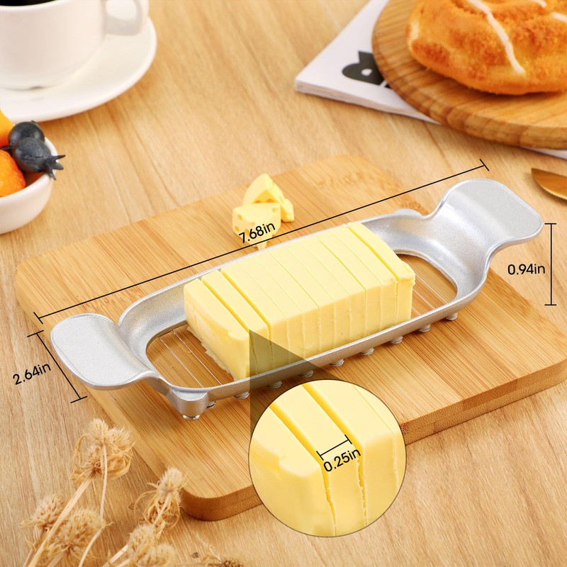 - 3.BUTTER SLICER EASY TO CLEAN: The stainless steel surface of the cheese slicer is easy to clean and maintain, effectively preventing stains and odors, and suitable for frequent use. (Contraindication: Do not put into the dishwasher high temperature cleaning, easy to occur blackening phenomenon)