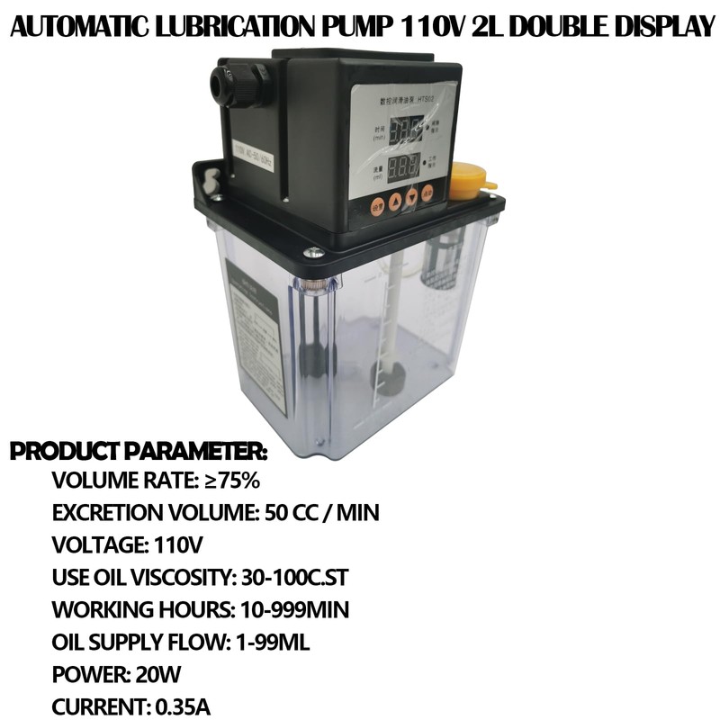 WYDDDARY 2L Double Digital Display Electric Automatic Lubrication Pump Digital Numerical Control Electromagnetic Lubrication Pump for Machine Tools Printing Textiles 110V