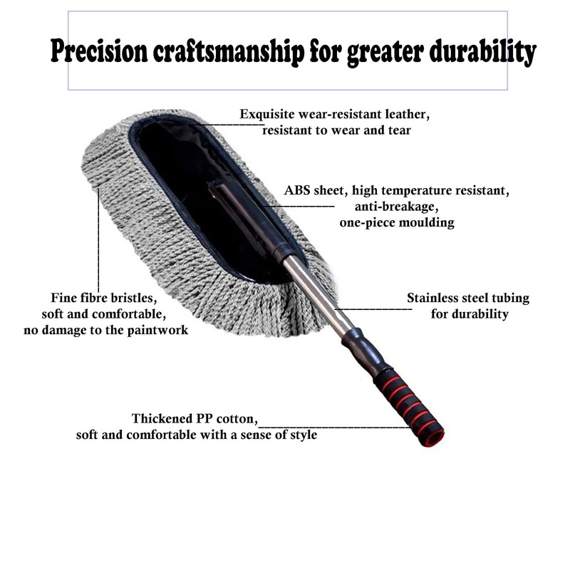 - 【Telescoping Design】 The Car Duster Brush features a telescoping handle, making it easier to reach and clean those hard-to-reach areas.