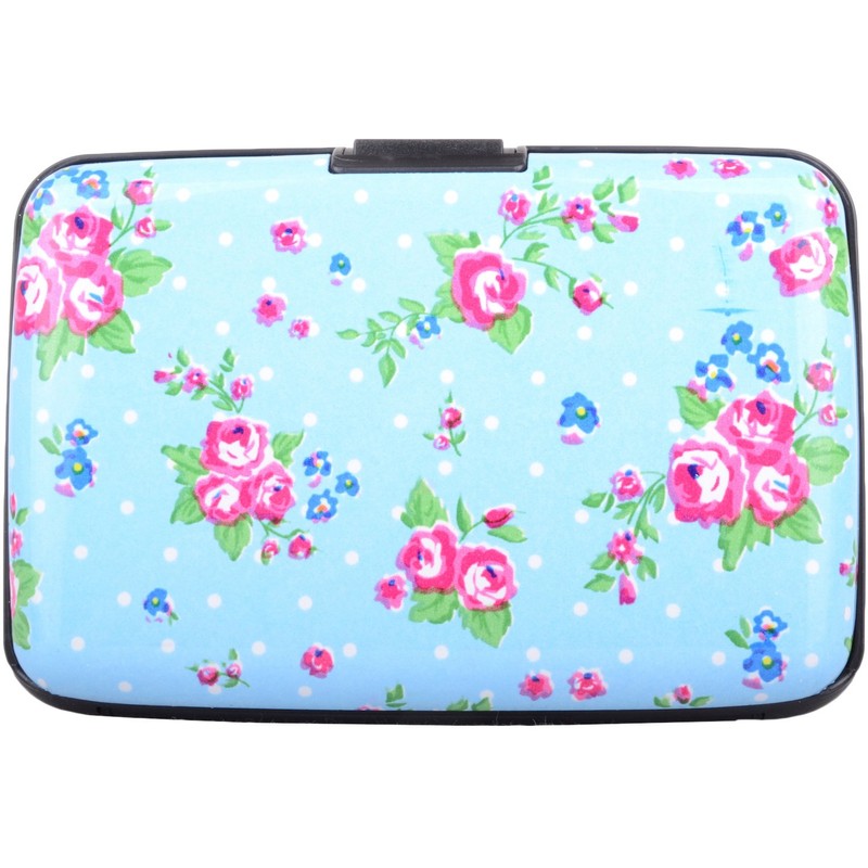WYE LEATHER Womens/Girls Floral Retro Faux Leather Travel Wallet - Blue with Roses