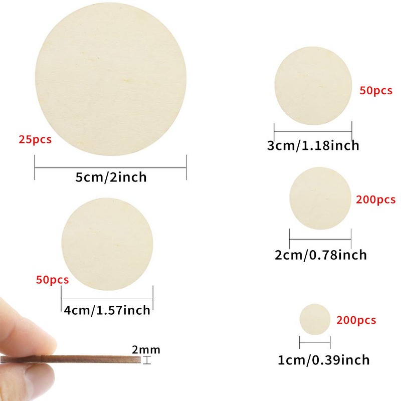 - Various Sizes: we provide with 5 different sizes round unfinished wooden pieces, namely 50mm(25pcs), 40mm(50pcs), 30mm(50pcs), 20mm(200pcs) and 10mm(200pcs).