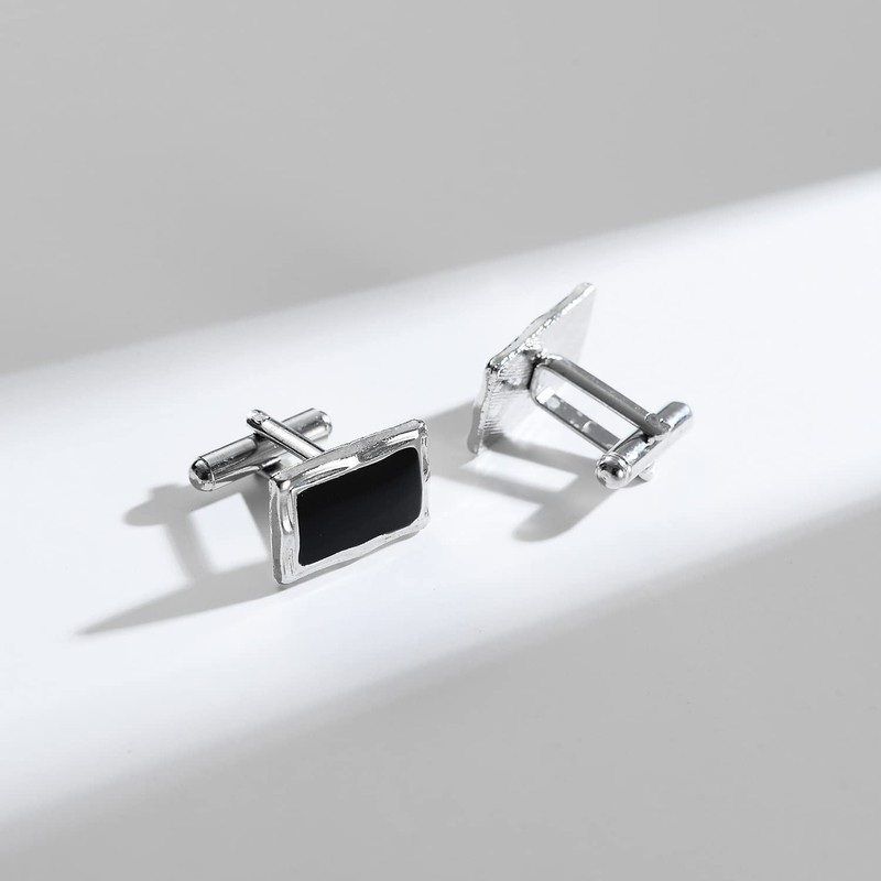Wynameleri Cufflink Tie Clips Set Men's Accessories Gi-ft, 3PCs Men's Black Cufflinks for Men Wedding-Cardigan Clips for Men- Silver Brooch- Cufflink Box Black Polishing Cloth