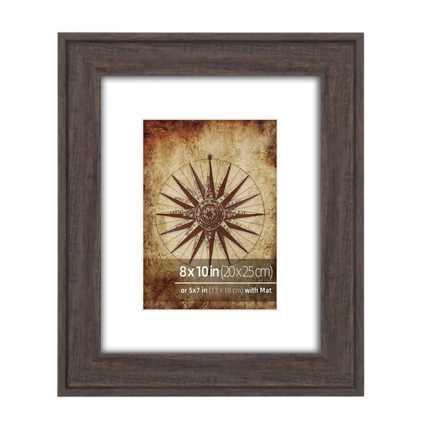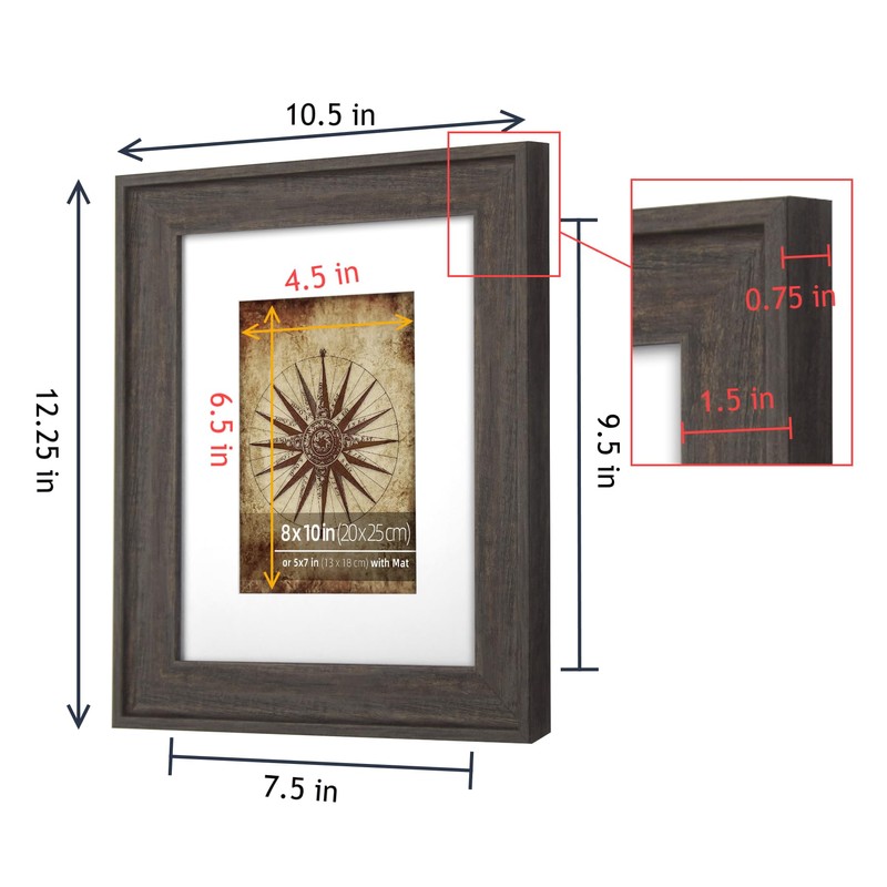 WYNCO 8x10 inch Dark Grey Scoop Wide Border Picture Frame, Tabletop or Wall Mount Display, Matted to 5x7 inch, Glass Front