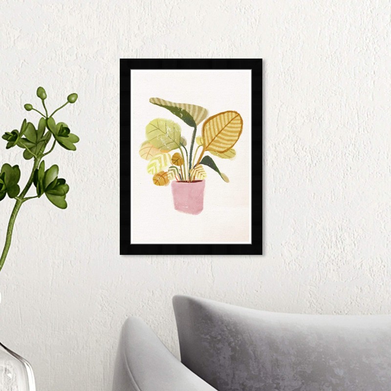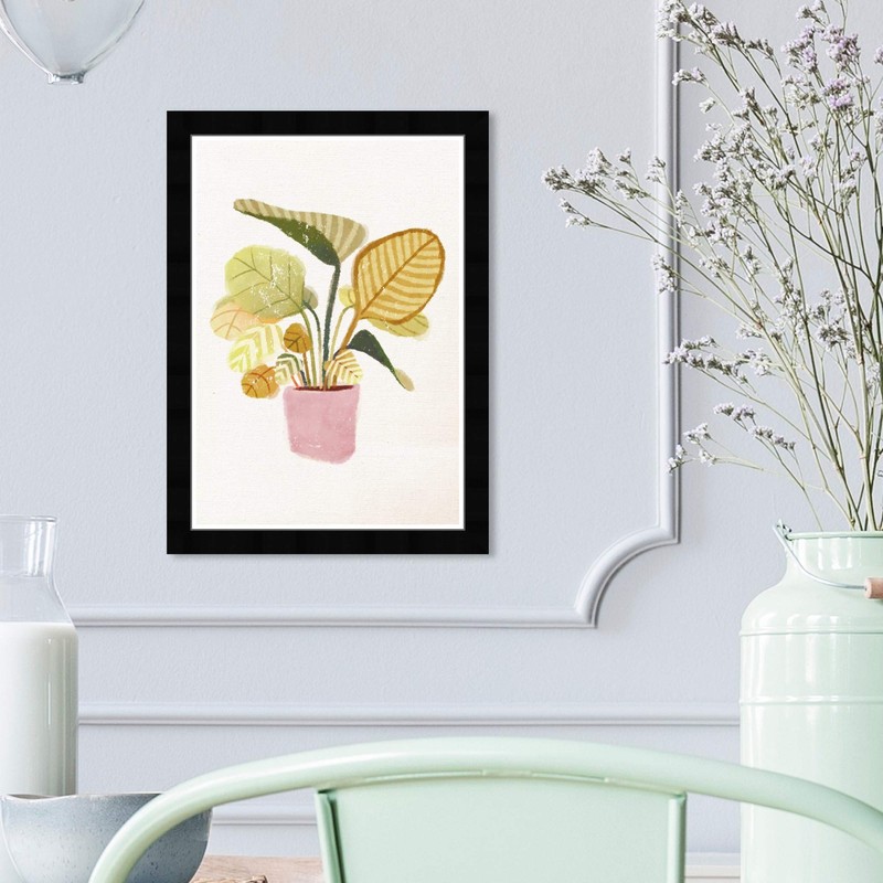 Wynwood Studio Botanical Framed Wall Art Prints 'Calathea Orbifolia' Florals Home Décor, 13" x 19", Green, Pink