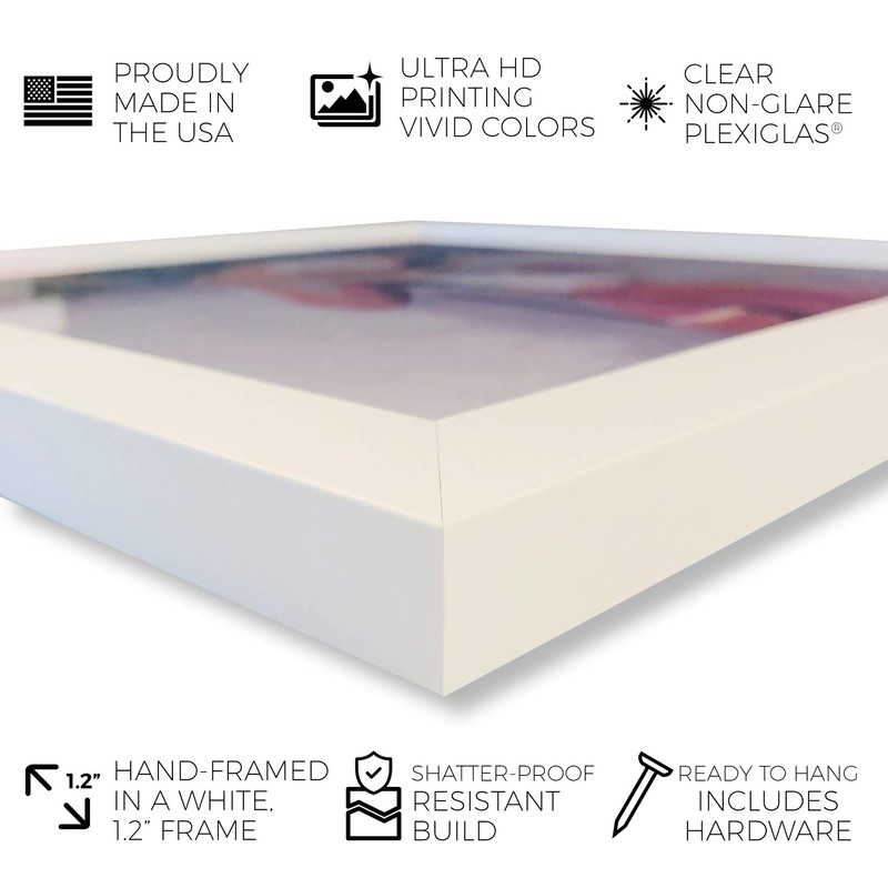 - FRAMED ART PRINTS professionally hand framed in a 1. 2" White frame. The Art print is 19 x 13 inches and finished with premium non-glare plexi glass; our wall décor is shatter proof and safe to hang anywhere.