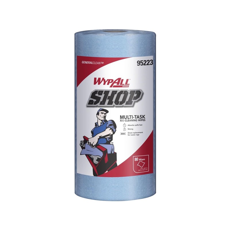WYPALL® SHOP, Strong and Absorbent Multi-Purpose Reusable Cleaning Wipes, Blue Sheet, Standard Roll (80 Wipes/Roll)