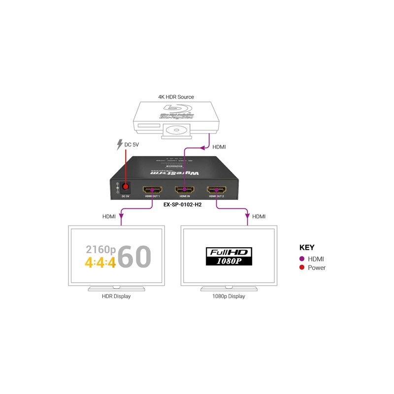 WyreStorm Essentials™ Plug & Play 1x2 HDMI Splitter with Scaling Feature
