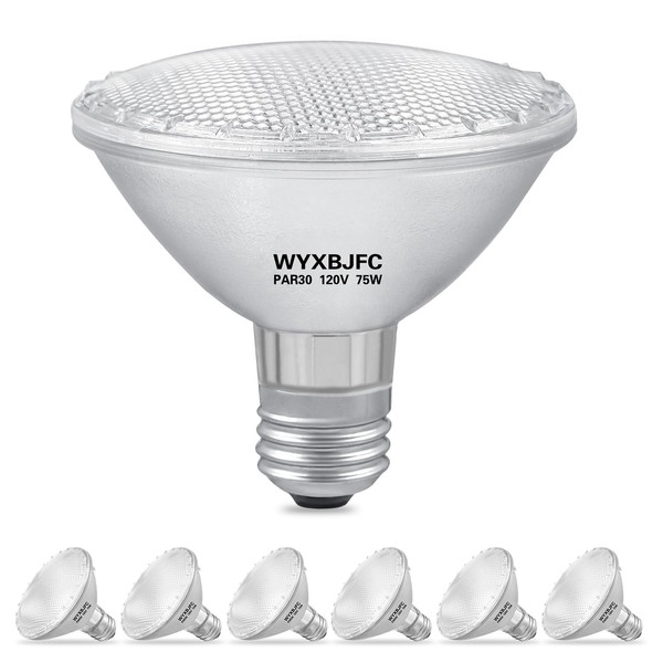 WYXBJFC Par30 75W Halogen Light Bulbs - 6 Pack Short Neck Halogen Flood Light Bulbs, 3000K Warm White, Dimmable Long Lasting Halogen Bulb with E26 Medium Base for Recessed Light Bulb, Track Light