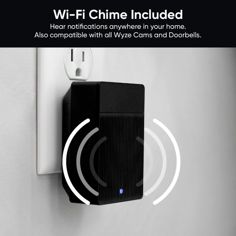 - Wi-Fi Chime Included & Two-Way Audio: Hear notifications anywhere in your home. Compatible with all Wyze Cams and Doorbells. Respond to visitors by simply pressing the "talk" button in the Wyze app.