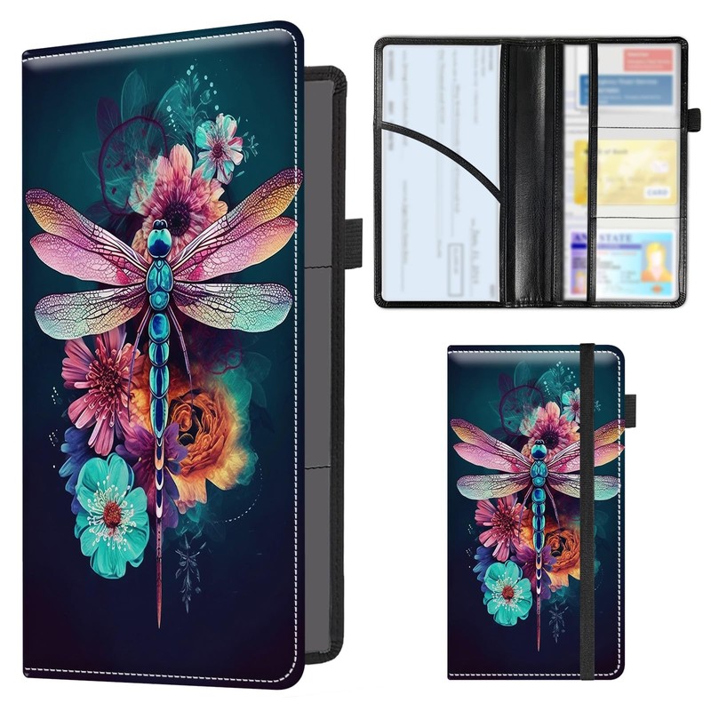 WZCJDHMJ Leather Car Document Holder-Vehicle Registration & Insurance Card Organizer for Auto,Truck -ID & Driver's License Storage for Men Women,Beautiful Dragonfly