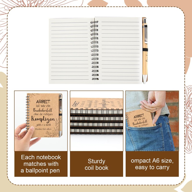 Wzczf Dankeschön Geschenk Für Kollegen A6 Notizblock Team Karten Abschiedskarten Kugelschreiber Mit Gravur Danke Für Alles Spirale Notizblock Kugelschreiber Aus Holz Liniert Abschiedsgeschenk, 8 Sets