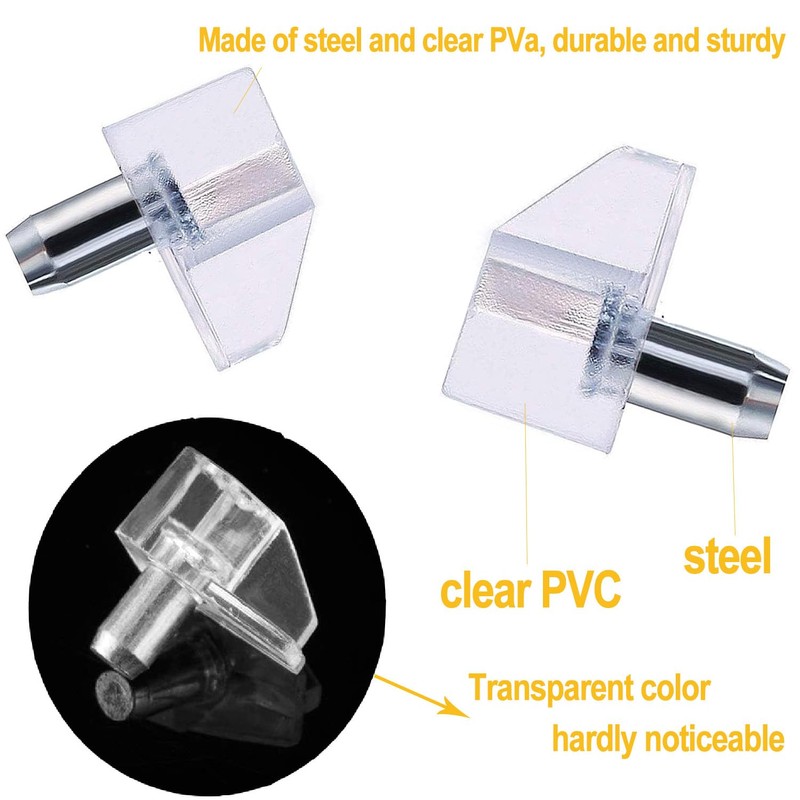 - 【 Material】: The shelf supports pin is made of transparent PVC and stainless steel materials,Durable and sturdy. The triangular design is stable and it can prevent shelves from swinging,can be used for a long time.