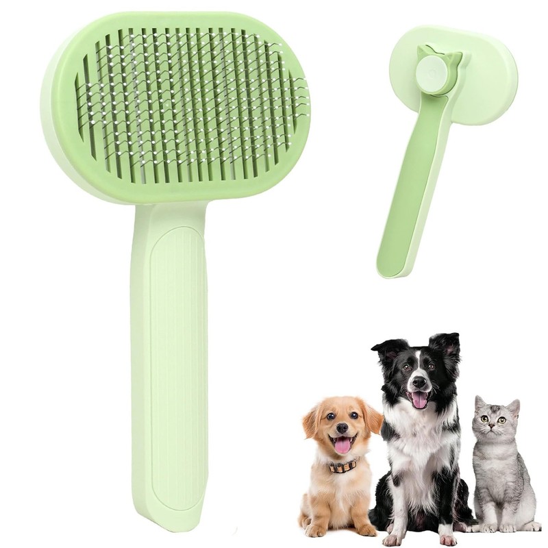 It's Effortless Self-Cleaning Functionality Our pet grooming brush features an innovative self-cleaning mechanism. Simply press the button to retract the bristles and slide off the hair.