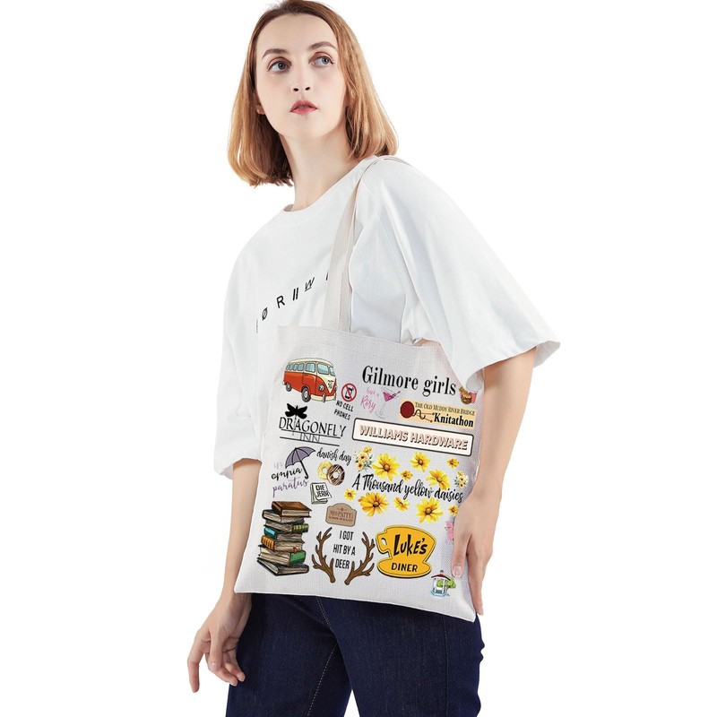 WZMPA Lorelai And Rory Fans Tote Bag Gilmore TV Show Gifts Luke's Dinner Reusable Grocery Bag Lorelai And Rory Merchandise (Luke's Diner TG)