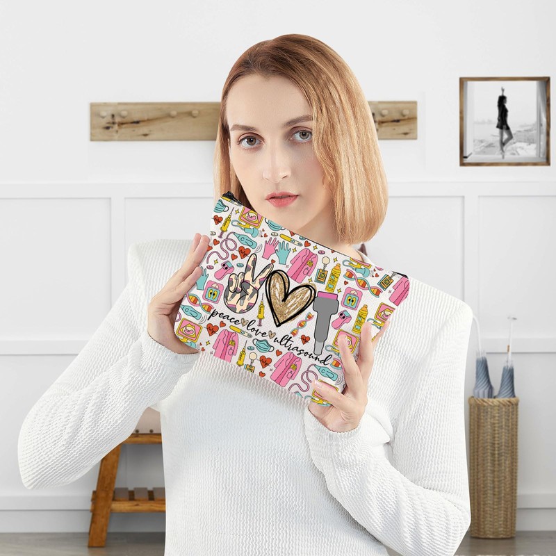 WZMPA Sonography Tech Cosmetic Makeup Bag Sonographer Gifts Peace Love Ultrasound Makeup Zipper Pouch Bag For Radiologist Graduation Student, Peace Ultrasound F, Fit