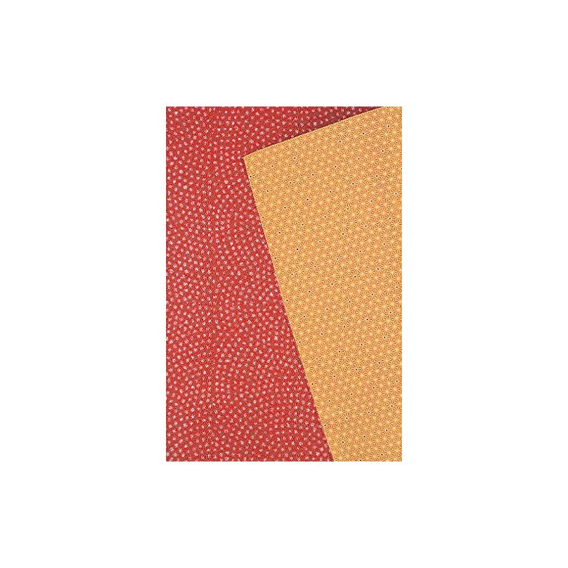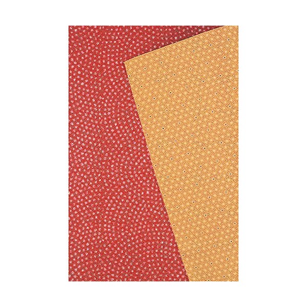 さざら織両面ふろしき 二巾 鮫小紋/麻葉 朱×金茶 20-030013