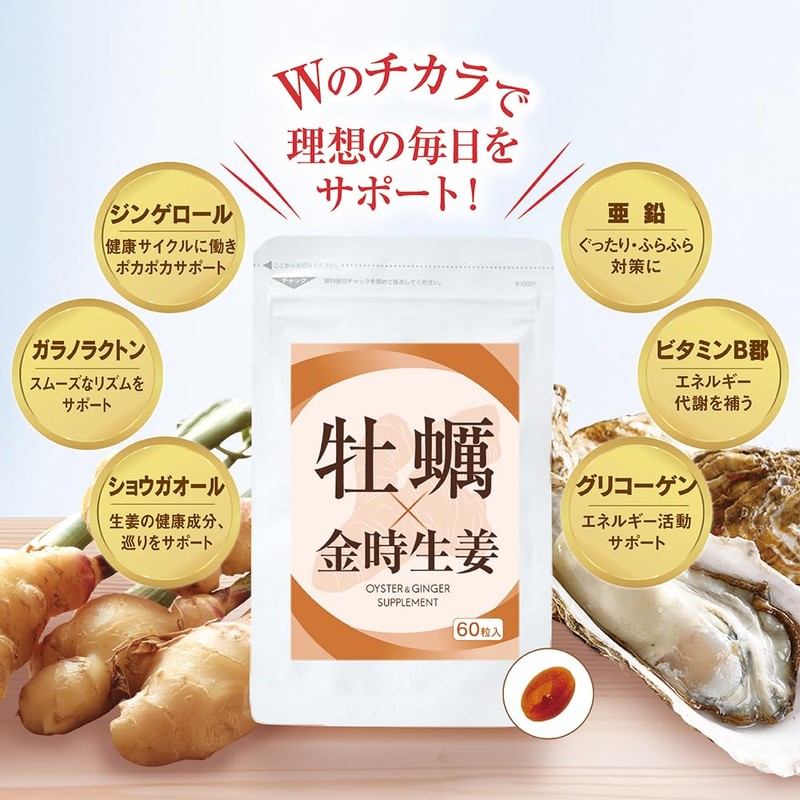 濃縮牡蠣エキス×金時生姜を使用した、自然派サプリメント 内側からの冷えに悩んでいる方におすすめの商品です。