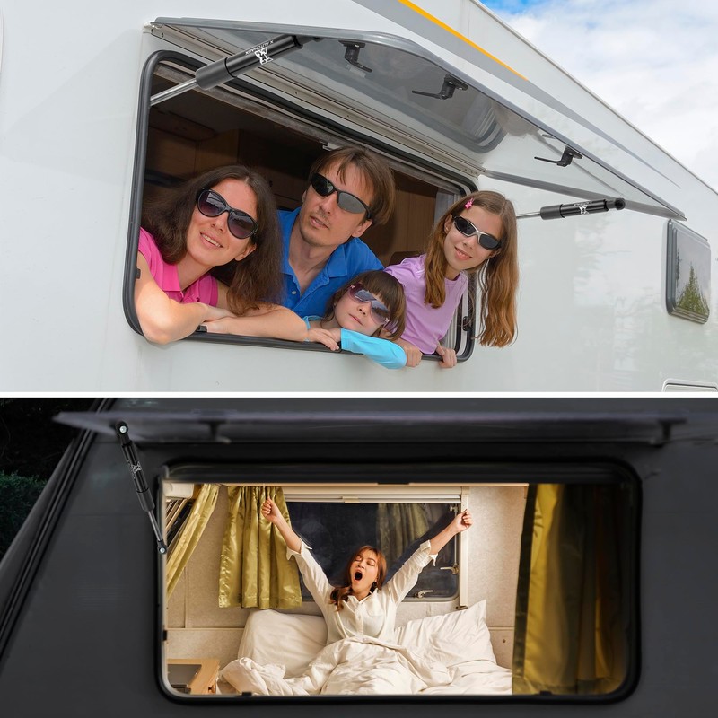 This gas spring is universal, which fits for RV window, car hood and trunk, pickup truck tonneau cover, tailer cover, bus luggage door, motorcycle seat cover and so on.