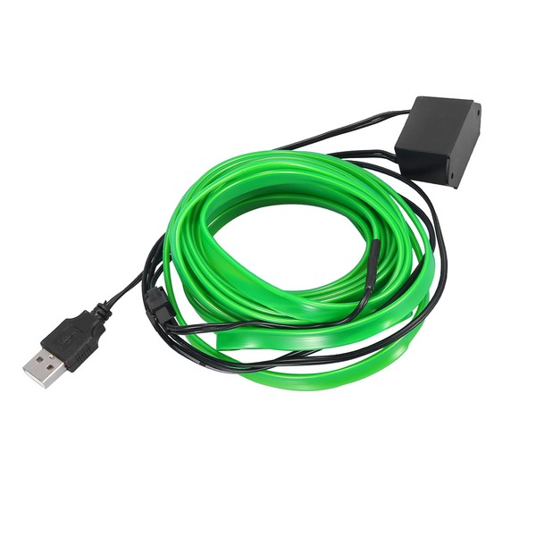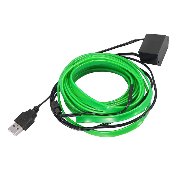 X AUTOHAUX 4 Meter/13ft Interior USB Neon EL Wire String Strip Green Cold Light Glow String Strip Set for Car Decoration