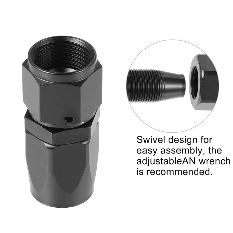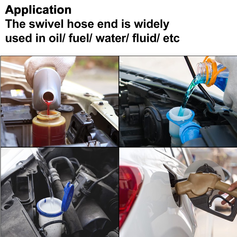 - [Application] The swivel hose end is widely used in oil/ fuel/ water/ fluid/ airline etc. Connect oil gas line, braided fuel line, clutch hose, turbo line, etc.