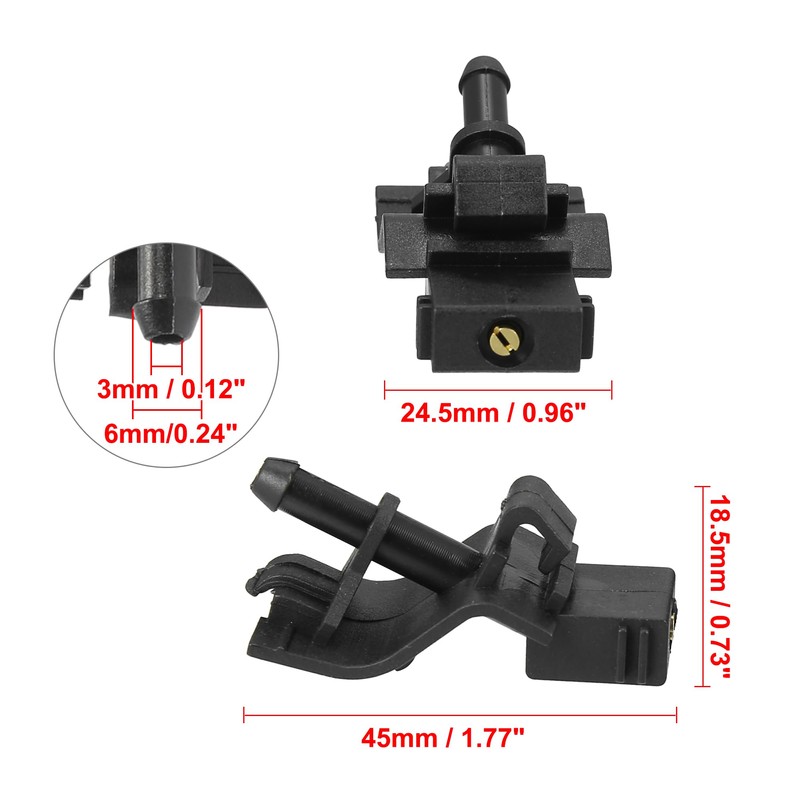 - [Material] The windshield washer nozzles are made of plastic construction, it is built to long lasting durability, for long service life. Direct fit, a good replacement for your old or broken one.