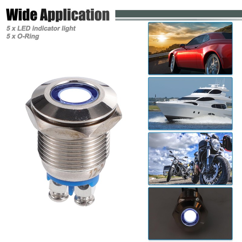 • Package included: 5 x Metal indicator light( One for each of red, yellow, blue, green and white); 5 x O-Ring