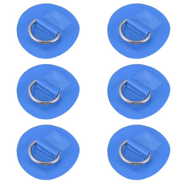 X AUTOHAUX 6pcs 6cm Blue D Ring Patch PVC Stainless Steel Round Shape D Ring Pad for Surfboard Inflatable Boat Kayak Canoe Deck