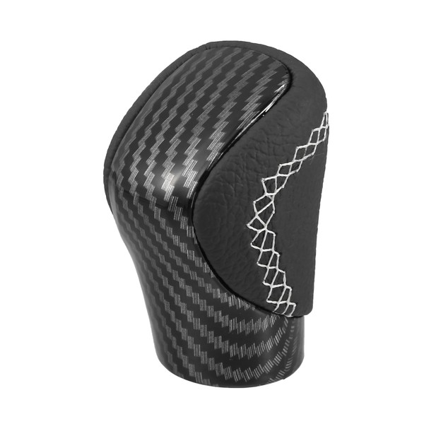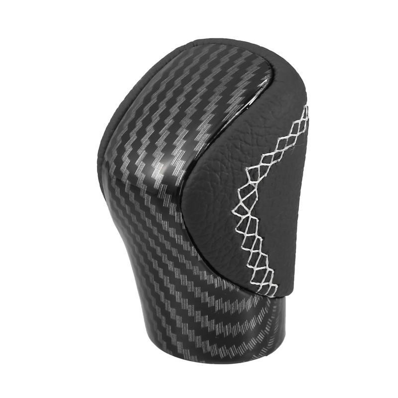The Car Gear Shift Knob is made of Carbon Fiber Cover Black Faux Leather with White Thread.
