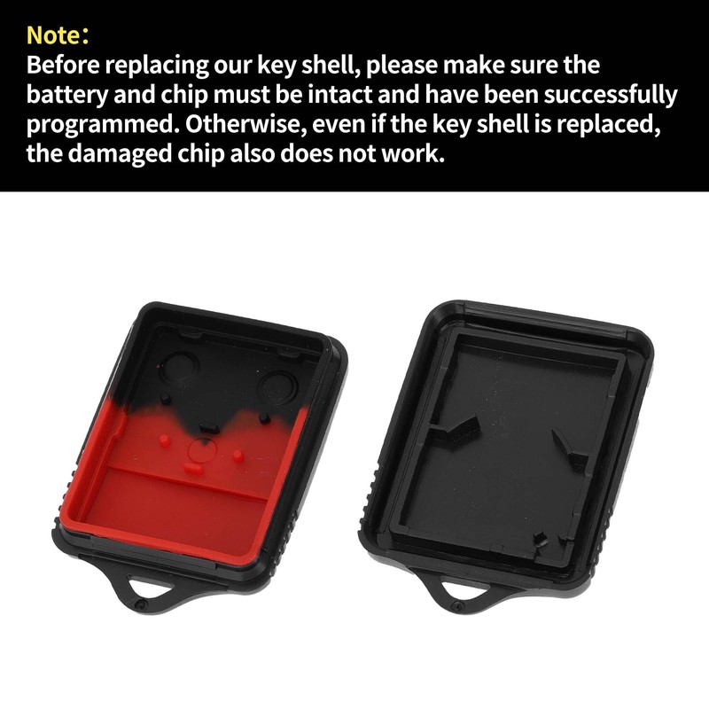Key Fob Shell Case is constructed with plastic, sturdy and durable. Please make sure the battery and chip must be intact and have been successfully programmed. Otherwise, even if the key shell is replaced, the damaged chip also does not work.