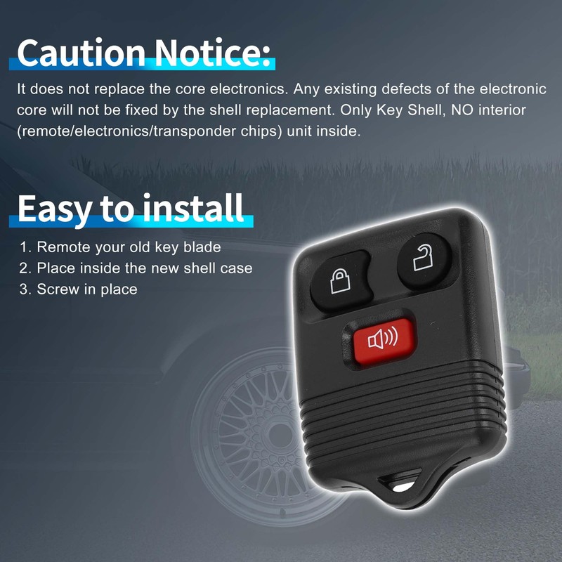 Caution Notice: It does not replace the core electronics. Any existing defects of the electronic core will not be fixed by the shell replacement. Only Key Shell, NO interior (remote/electronics/transponder chips) unit inside.