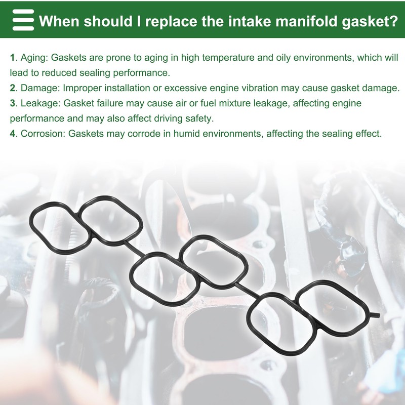 • [Function of Intake Manifold Gasket] Preventing air or coolant leaks reduces the possibility of serious engine damage, saving expensive repair costs. The engine intake manifold gasket set is essential to maintaining engine efficiency, reliability and life, while helping to improve performance and reduce emissions.