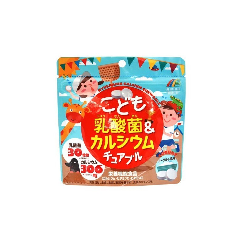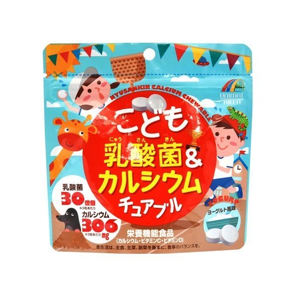 乳酸菌、カルシウム配合のそのままかんで食べられるヨーグルト風味のチュアブルタブレットです。お子様の健やかな成長にお役立てください。またお子様だけでなく大人の方もお召し上がりいただけます。1日3粒で、カルシウム30mg、ビタミンC79mg、ビタミンD4.7μg、乳酸菌30億個摂取できます。 お召し上がり方:1日3粒を目安にかんでお召し上がりください。