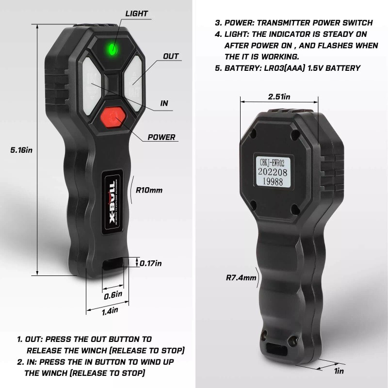 X-BULL Wireless Winch Remote Control Twin Switch Kit 12V Receiver 150ft Handset