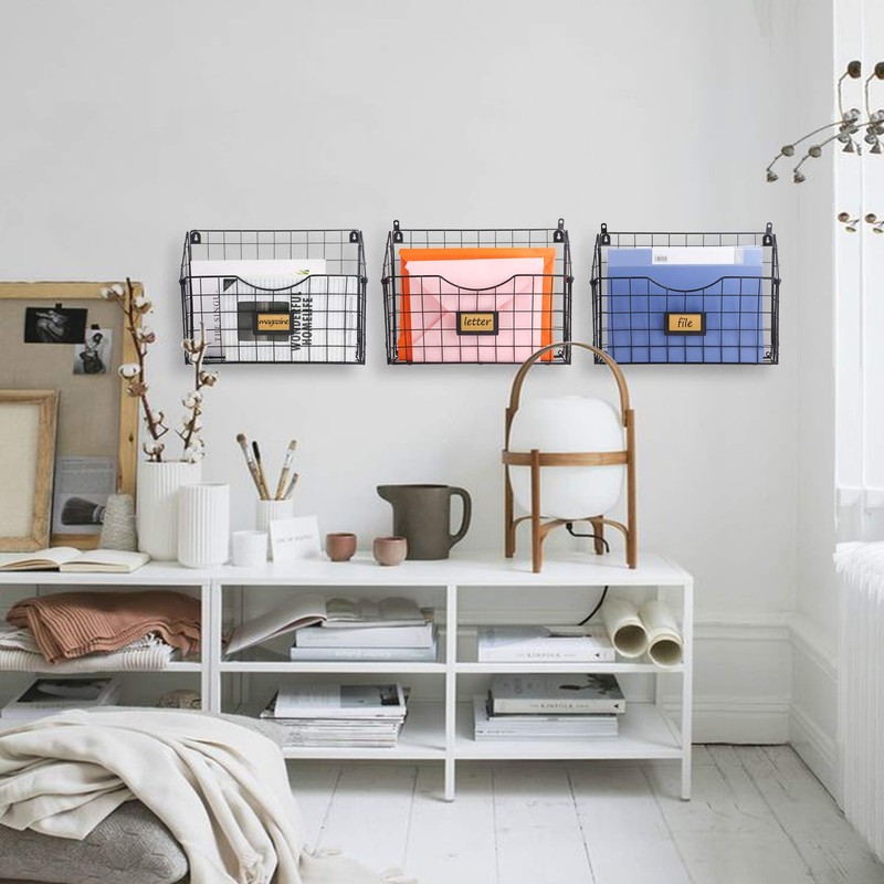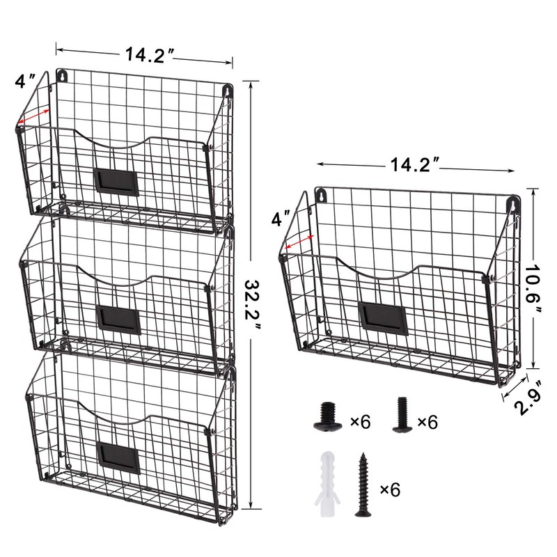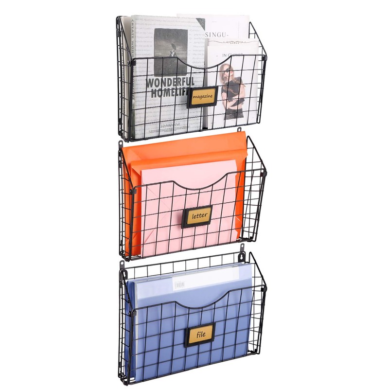- 【Perfect wall hanging files organizer!】X-cosrack 3-tier stackable&detachable hanging metal wall files make everything organizer in perfect way. For sorting files, documents, magazines, literature, catalogs, mail, letters, charts, brochures and notebooks, keep your office clear.Also the tag slot help you quickly identify what in the file rack