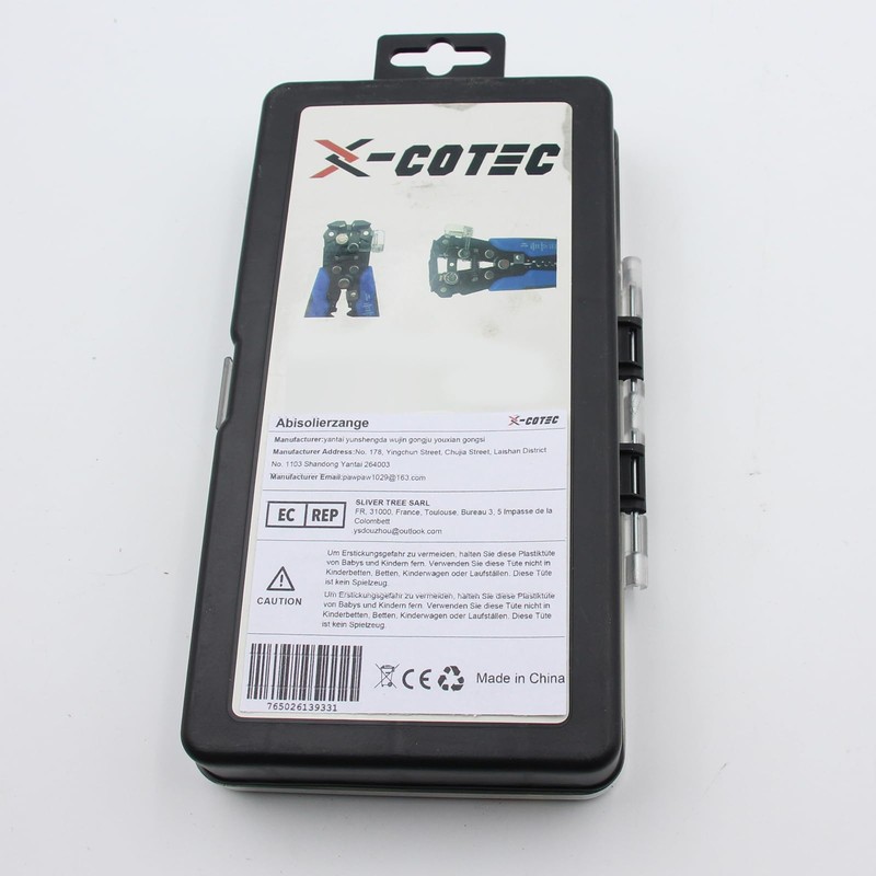 - [Function]:The X-COTEC 3 in 1 stripper has 3 functions: stripping, crimping and cutting. The wire stripper is equipped with a stripping strength adjustment knob, which can adapt to wires with different hardness; the stripping length positioning measuring part and measuring length return button can ensure the accuracy of the stripping length.
