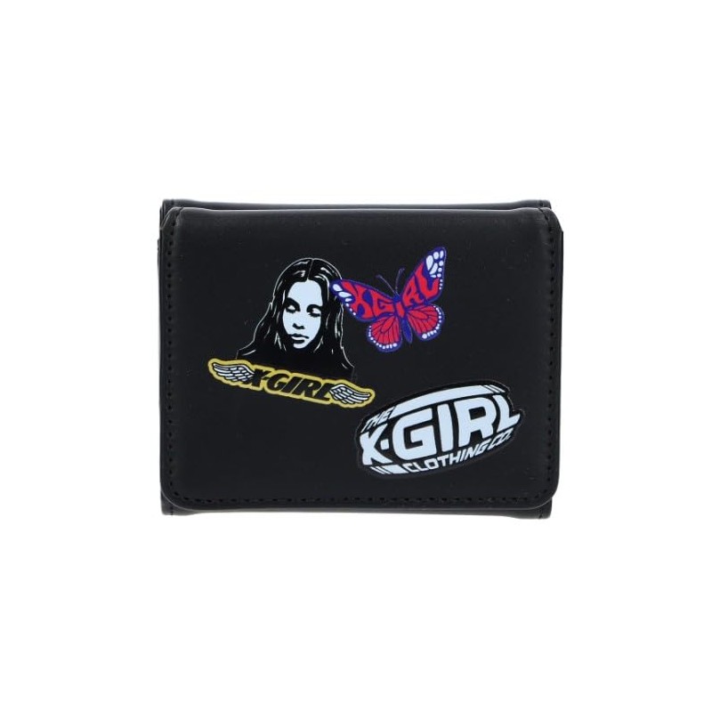 X-Girl Sticker Mini Wallet, Black Trifold Wallet